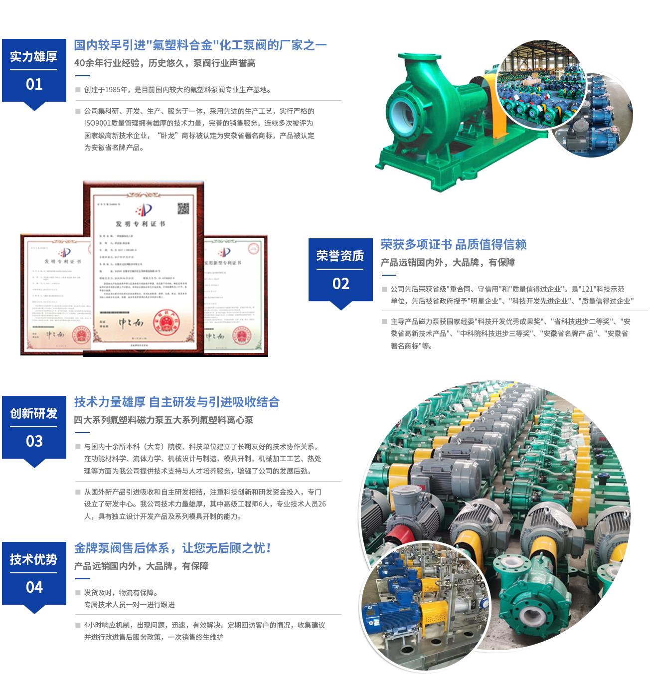??安徽臥龍泵閥股份有限公司前身涇縣氟塑料制品廠創(chuàng)建于1985年,是國(guó)內(nèi)較早引進(jìn)中科院上海有機(jī)化學(xué)研究所專利材料——"氟塑料合金",并以此耐腐蝕材料專業(yè)生產(chǎn)制造化工泵、閥、襯氟管道等產(chǎn)品的企業(yè)。公司經(jīng)過歷次的改制變革,2015年更名為安徽臥龍泵閥股份有限公司。